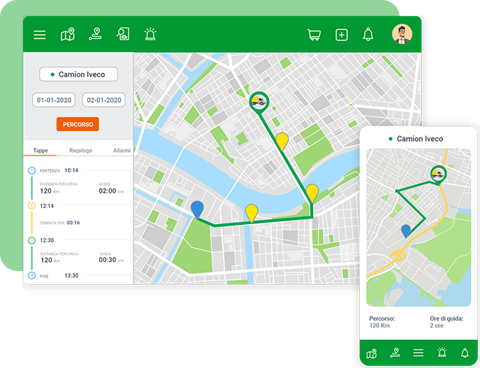 Consapevoli che i fleet manager nostri clienti hanno esigenze di mobilità abbiamo sviluppato la nostra soluzione di localizzazione sia su browser web che da app per smartphone. In qualunque momento si potrà accedere alla nostra soluzione comodamente da app Android® che Apple®